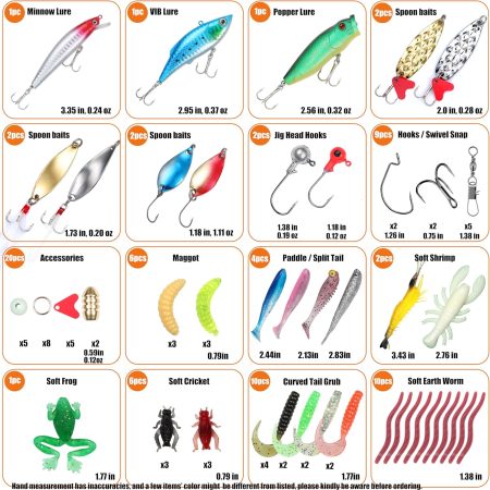 Fishing Lures Set Fish Lure kit for Bass Trout Salmon Freshwater Fish Tackle kit Including Plastic Shrimp Worm Bait Spoon Grasshopper Crankbait Jigs Hooks Fishing Gear and Equipment