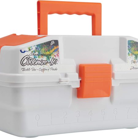 Shakespeare Customize-It Tackle Box, Kids Tackle Box with Tackle, Spill-Proof Tray, Includes 29 Pieces of Assorted Tackle, 3 Sheets of Customize-It Stickers, 2 Practice Casting Plugs, Fishing Journal
